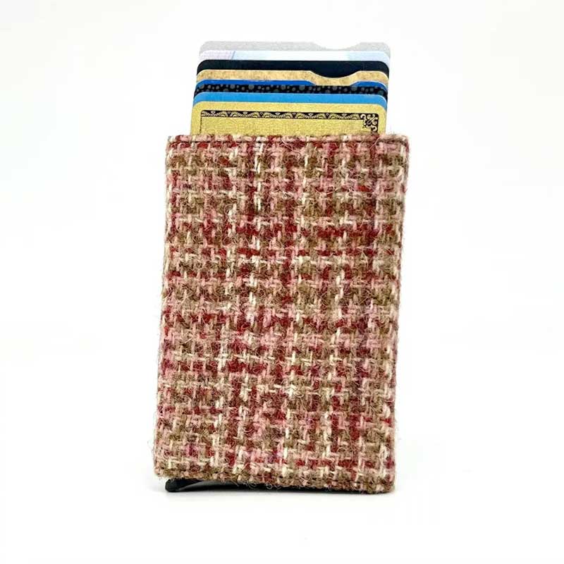 Harris Tweed Pop Up Card Holder In Blue/Pink Check
