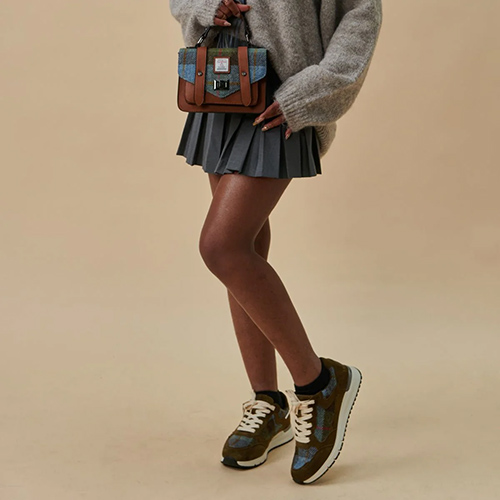 Harris Tweed The Rosie Trainer Shoe Chestnut-Blue Tartan