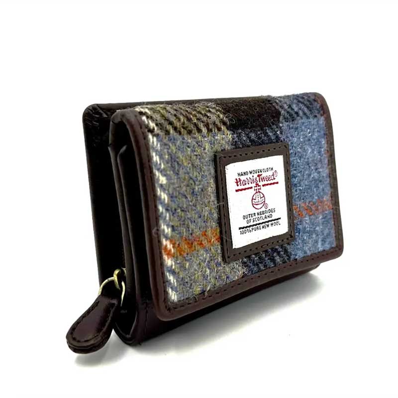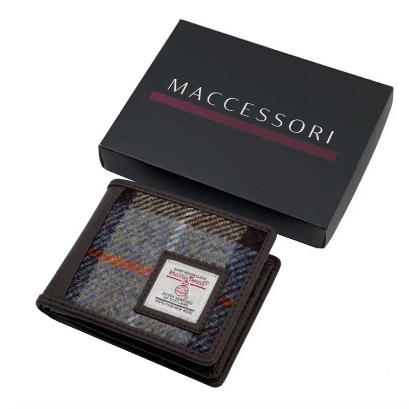 Harris Tweed Bifold Wallet In Blue Brown Check.