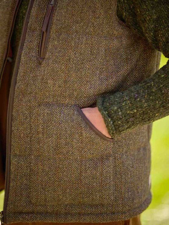Harris Tweed Bodywarmer “Levi” Gevoerd Met Lederen Applicaties.