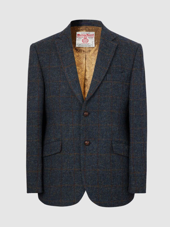 Harris Tweed Jacket in Blue Multi Check Hand woven from 100% pure wool Elbow patches 2 button fastening Side vents Fashion fit Paisley lining: 50% Acetate 50% Viscose