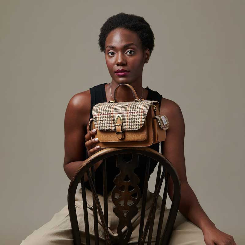 Maak kennis met de Melrose Crossbody uit onze luxe ledercollectie, een prachtig vervaardigd item van 100% echt leer en authentieke Harris Tweed® geweven op de Buiten-Hebriden.