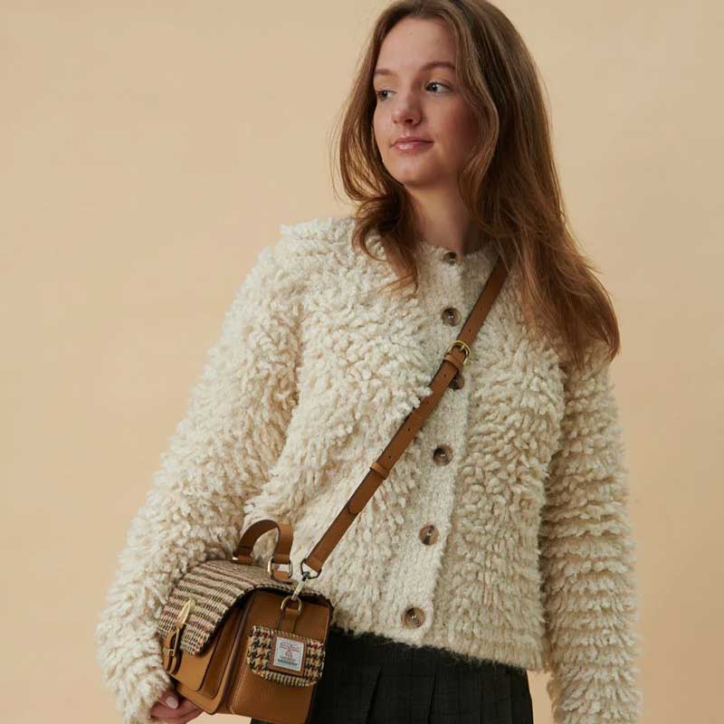 Harris Tweed Crossbody, The Melrose, Beige Dogtooth.