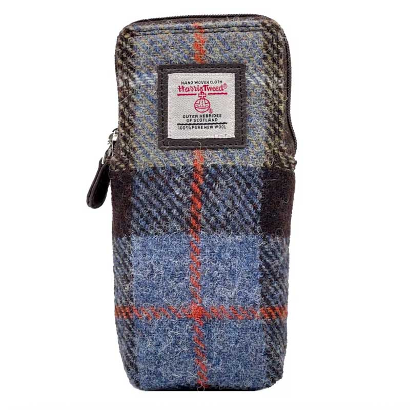 Harris Tweed Double Glasses Sleeve in Blue/Pink Check.