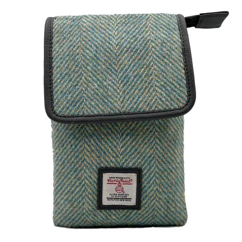 Harris Tweed Double Glasses Sleeve in Turquoise Herringbone.