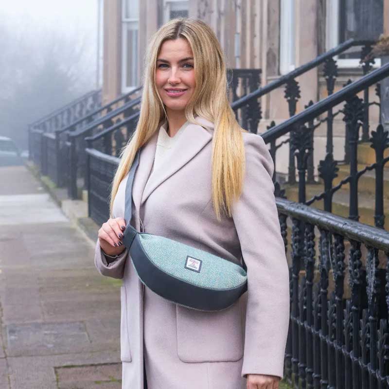 Harris Tweed Glasses Sleeve in Turquoise Herringbone.