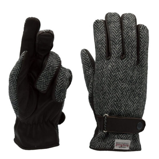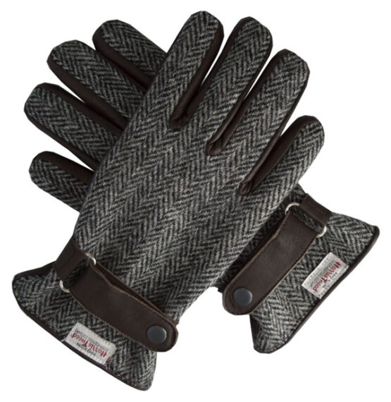 Ladies Brown Leather & Tweed Gloves in Heather Check