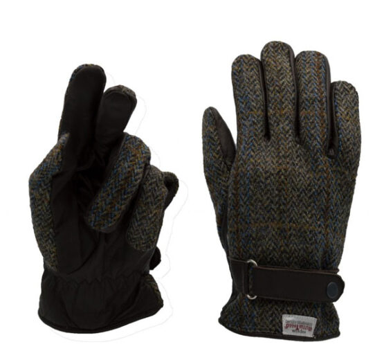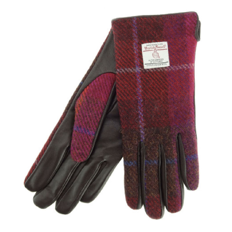 Ladies Brown Leather & Harris Tweed Gloves Boxed in Soft Pink Buchanan