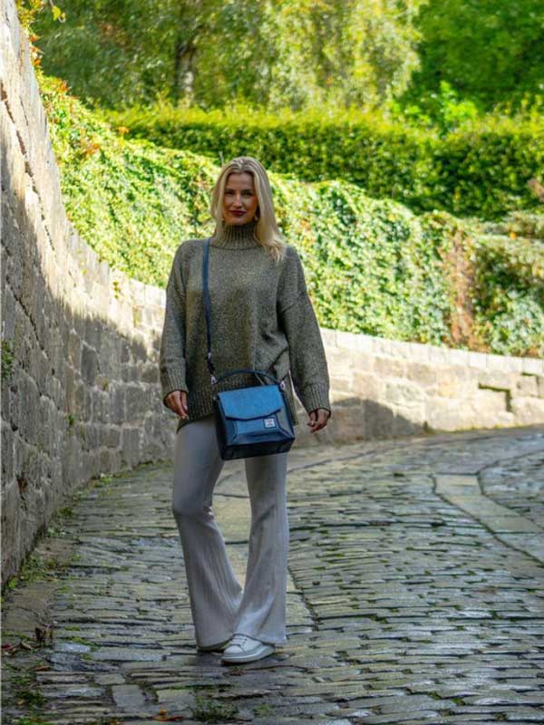 Harris Tweed Highland Messenger Bag In Sky Blue.