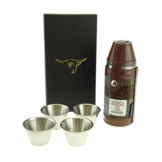 8oz Harris Tweed Hunting Flask with 4 cups. Supplied boxed.