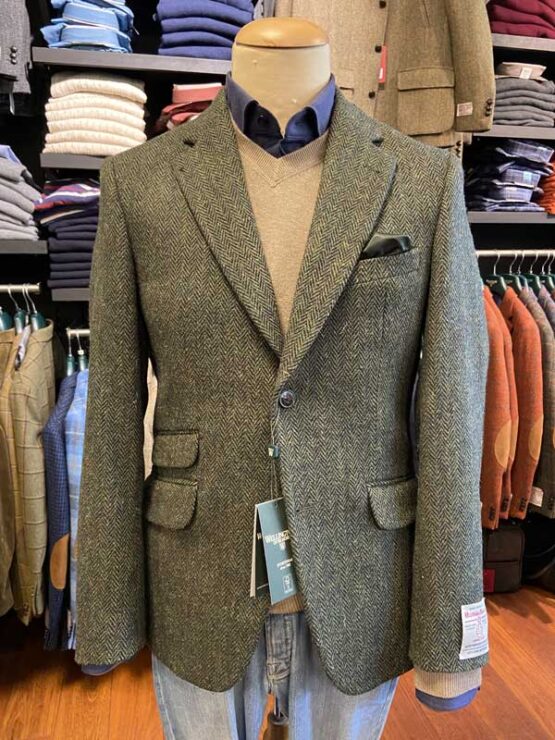 Harris Tweed Jacket London In Green Island Herringbone 632.