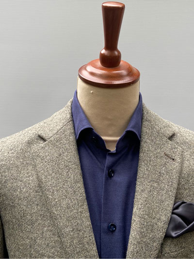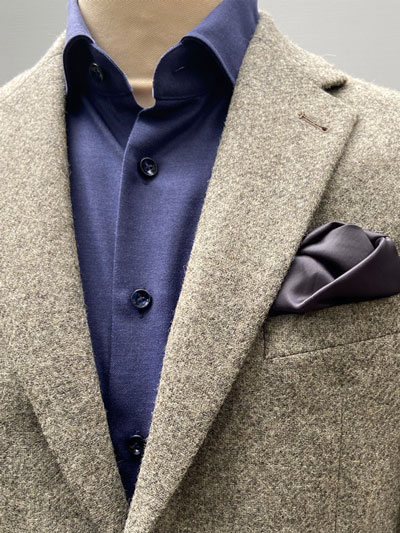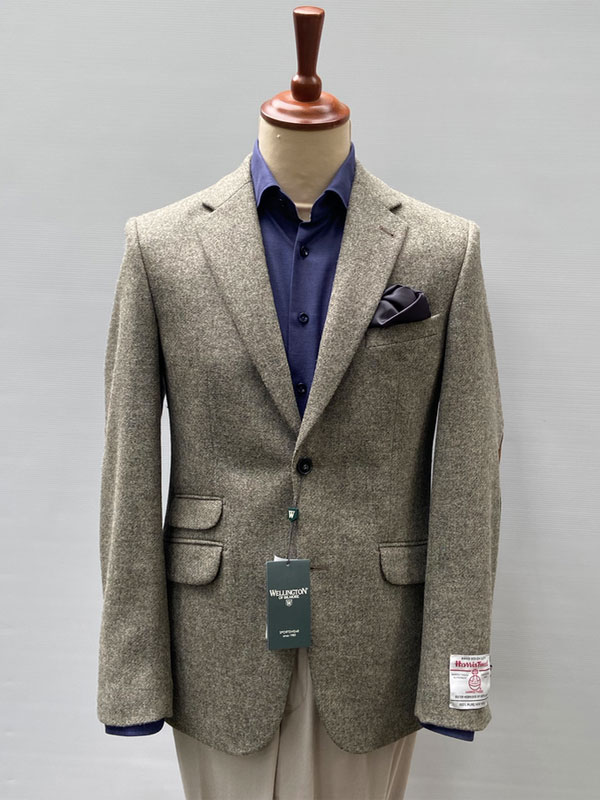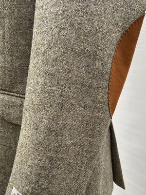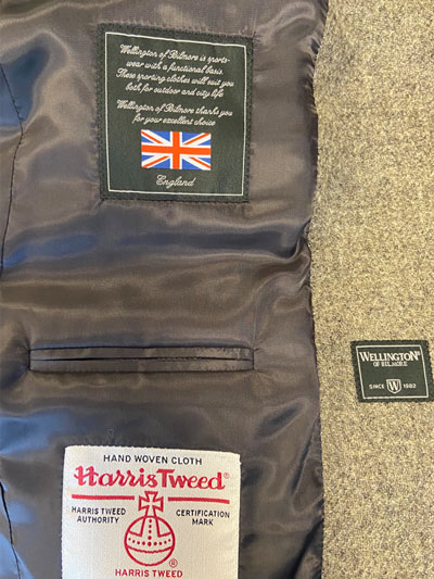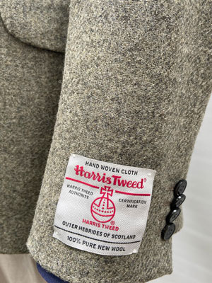 • HARRIS TWEED – handgeweven in Schotland • Contrasterende kraag • Naamlabel • twee extra binnenzakken • twee binnenzakken • twee klepzakken en ticketzakje aan de rechterkant • twee zijsplitten