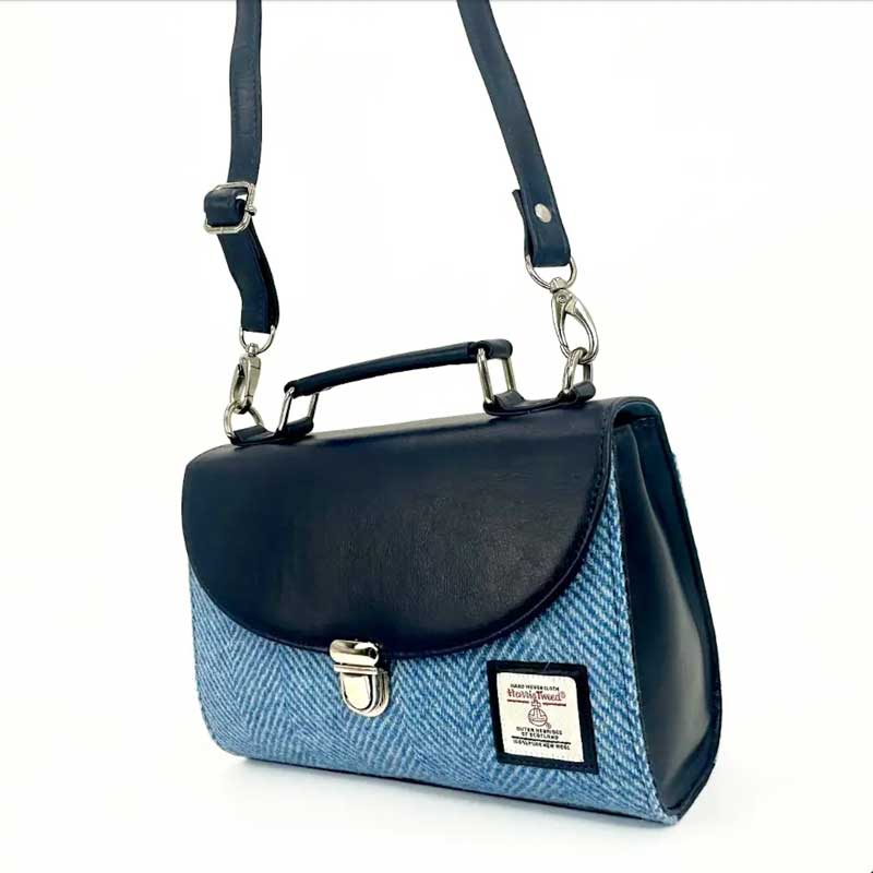 Harris Tweed Mini Day Bag In Sky Blue.