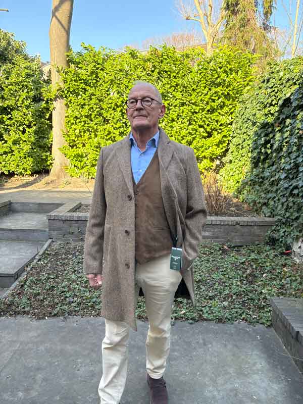 Een perfect voorbeeld van een moderne wollen jas met reverskraag, gecombineerd met een tweed die al tientallen jaren zijn waarde heeft bewezen. Deze herenjas is zowel geschikt voor zakelijke kleding als voor een stijlvolle avondoutfit.