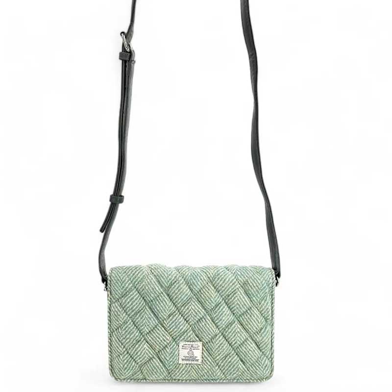 Harris Tweed Quilt Shoulder Bag In Turquoise Herringbone