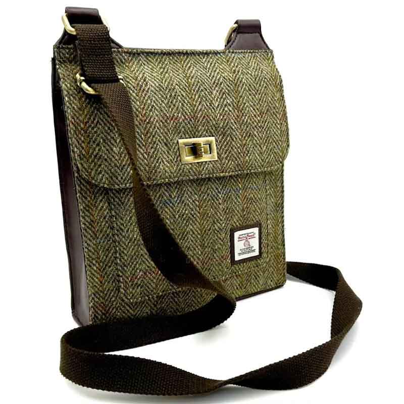 Harris Tweed Satchel Bag In Country Green.
