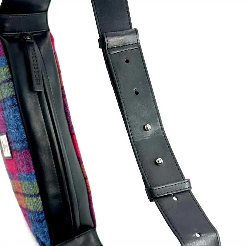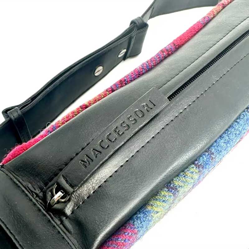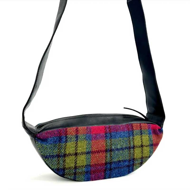 Harris Tweed Sling Bag In Blue/Pink Check.