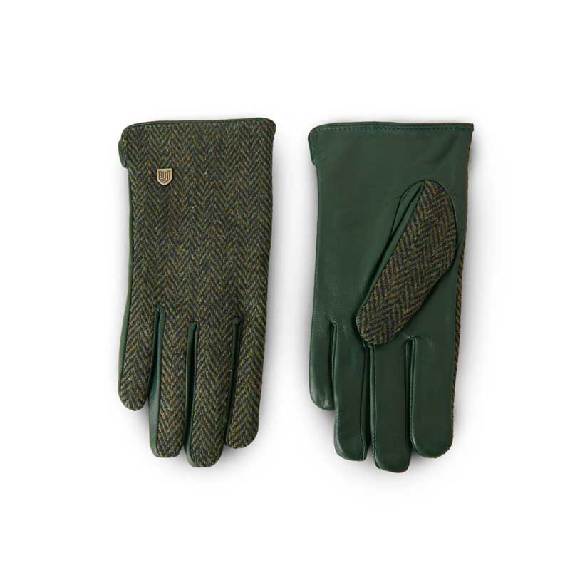 Ladies Harris Tweed Gloves Dark Green Herringbone.