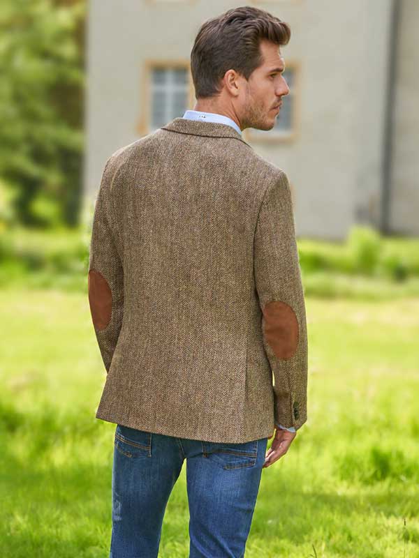 Pullover lambswool Midnight met Harris Tweed details Blauw